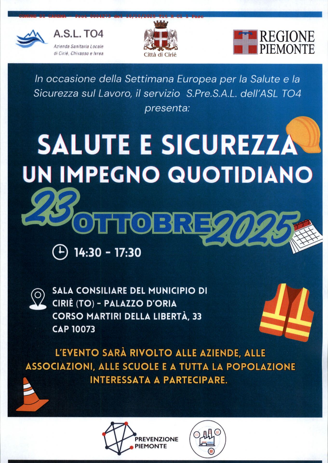 Descrizione Incontro sul tema "Salute e Sicurezza un impegno quotidiano" 23 Ottobre 2025 A cura di Servizi demografici e Protocollo Last edit: 13/10/2025 12:54:15