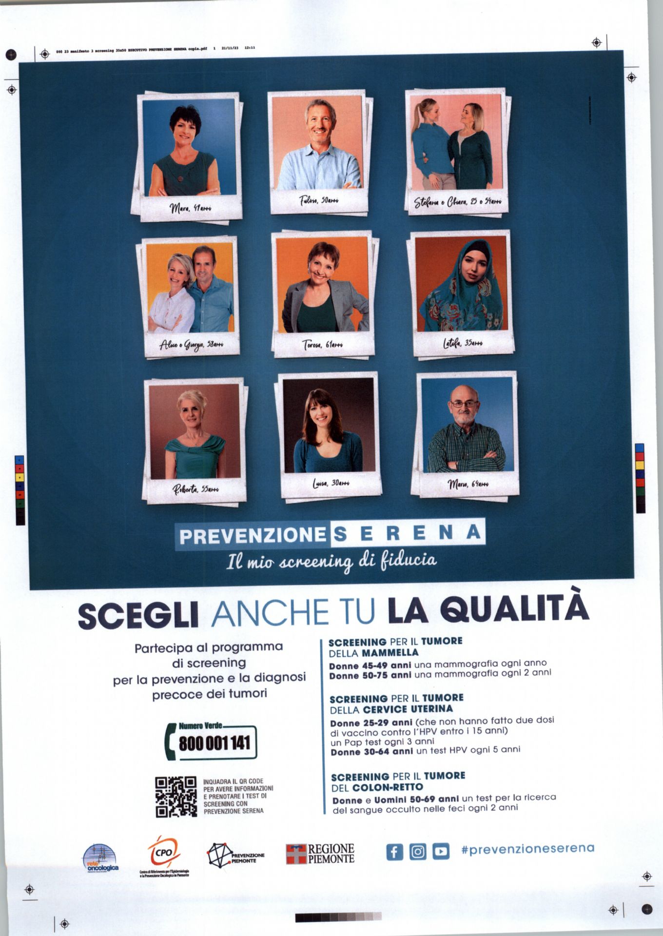 nuova campagna informativa Screening Oncologici - Regione Piemonte