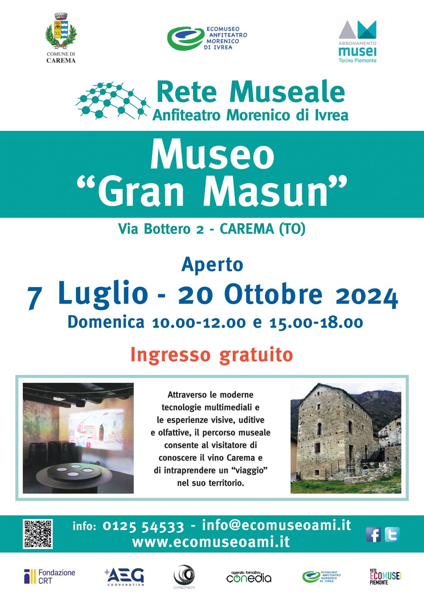 La Gran Masun è un vero e proprio centro di valorizzazione del vino e della viticoltura di Carema, capace di offrire al pubblico un'emozionante e coinvolgente esperienza immersiva multisensoriale. Il percorso museale infatti, attraverso le moderne tecnologie multimediali e le esperienze visive, uditive e olfattive, permette al visitatore di conoscere tutti gli aspetti del vino Carema e di intraprendere un “viaggio” sul suo territorio, per scoprirne natura, cultura, storia e architettura.