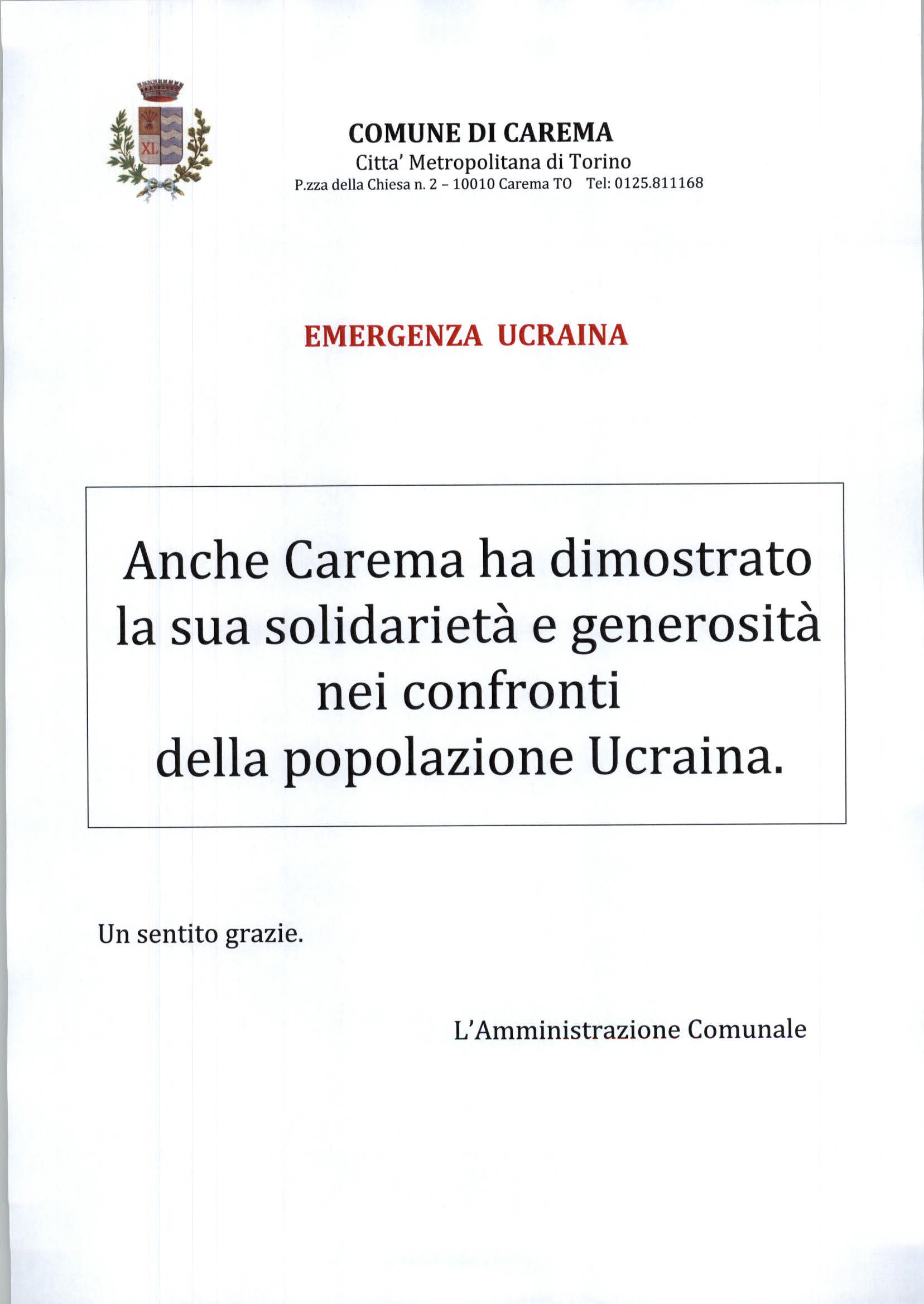 Descrizione Ringraziamenti Ucraina Allegati Documenti Ringraziamento Ucraina [.jpg 245,44 Kb - 12/04/2023] A cura di Servizi demografici e Protocollo Ultimo aggiornamento pagina: 12/04/2023 15:54:28