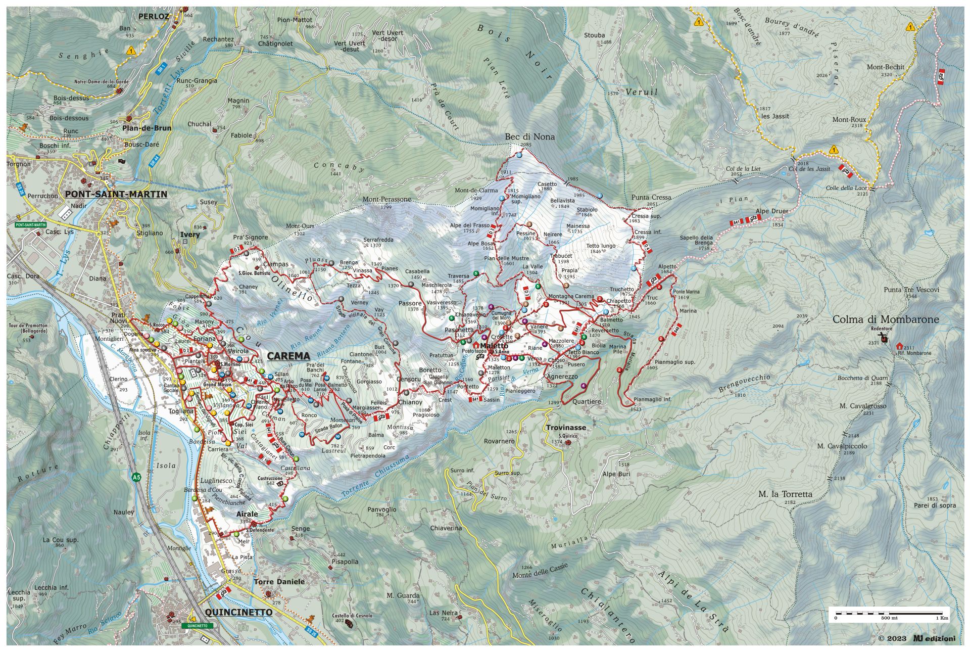 I percorsi si dipanano sui sentieri e mulattiere esistenti nel territorio comunale con partenza dal centro abitato di Carema e dall'Alpe Maletto e sono gratuiti.