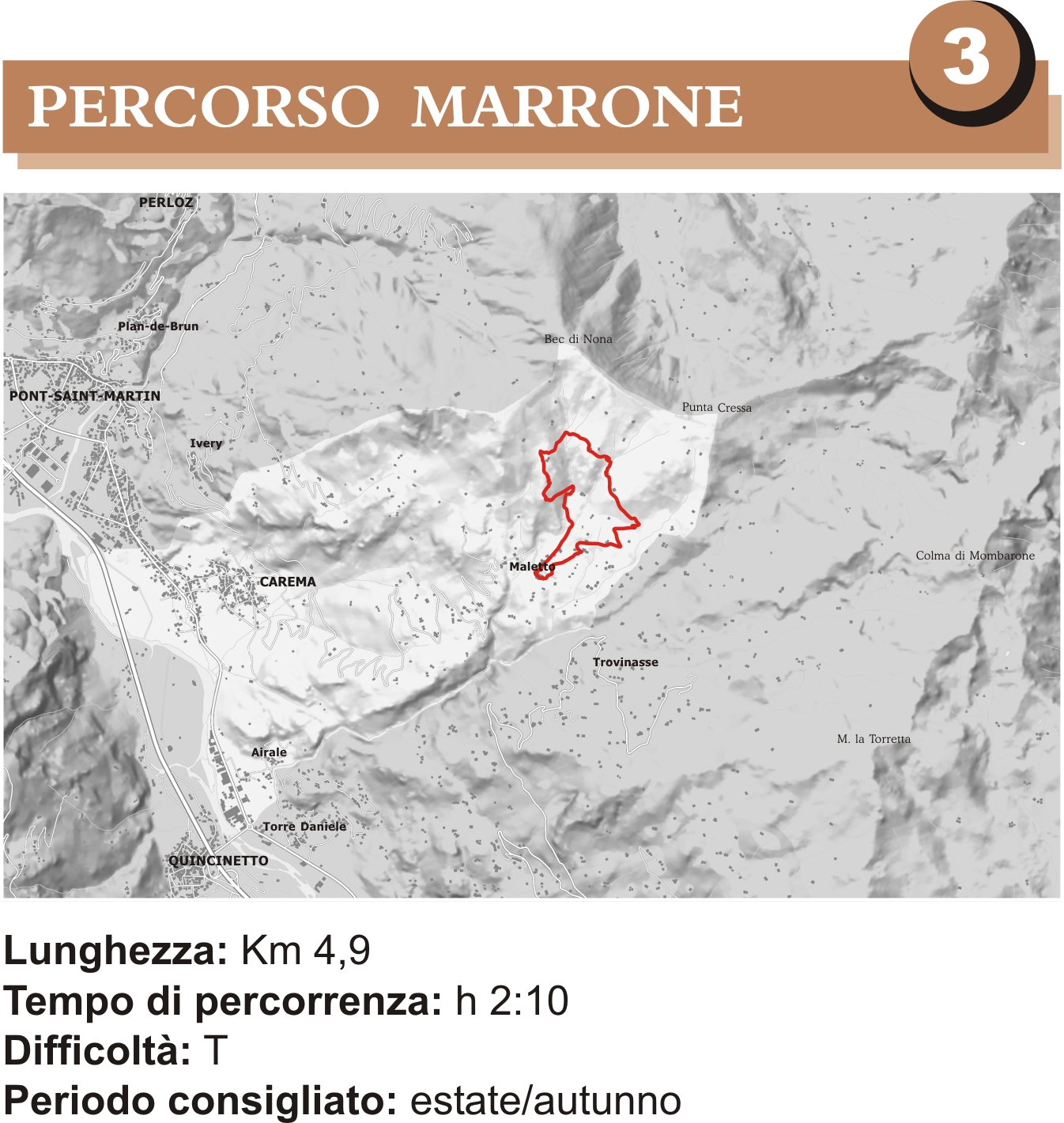 Il percorso parte e arriva all'Alpe Maletto a 1325 m; la quota più alta è posta a 1675 m in località Pessine.