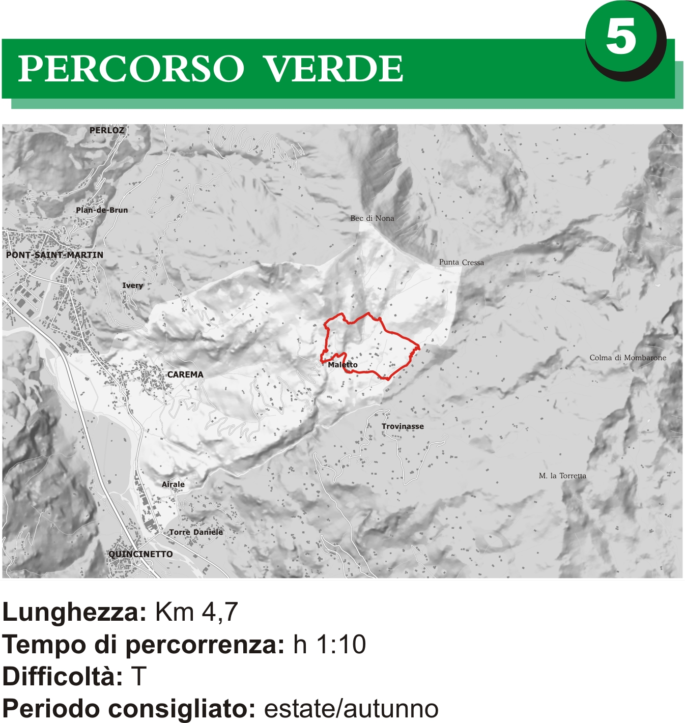 Il percorso parte e arriva all'Alpe Maletto a 1325 m; la quota più alta è posta a 1510 m in località Balmetto.